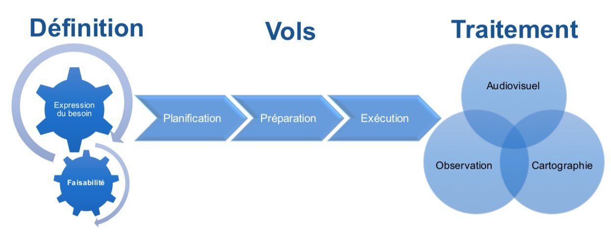 Le processus de l'organisation de nos missions drones sont l'assurance d'une pleine réussite de vos projets.